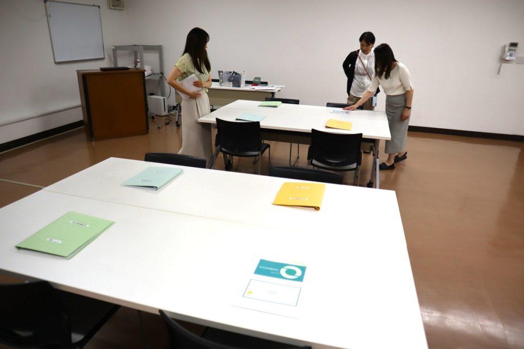 さて最後はデスクを拭いて、資料を並べて準備完了です。想いを込めて作り上げた今回の研修は、社長や部門長の意見を取り入れたプログラム。