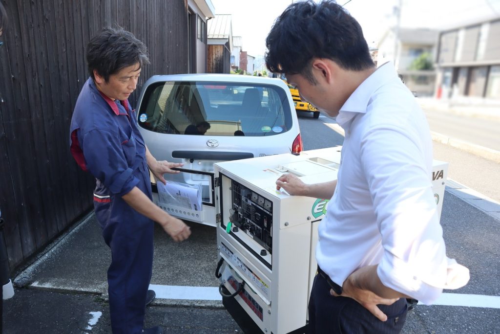 今回、同席させていただいた非常用発電機の試運転は“一度は参加しておくべき”“参加しておいてよかった”と思えるものでした。また「尾賀亀防災プロジェクト」のメンバーが、定期的にこのような試運転を行い災害に備えてくださっていることを知り、安心感がもてました。