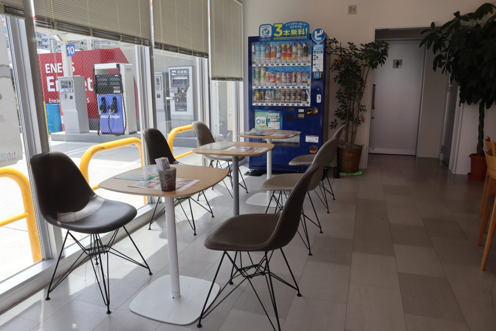 全部で8つあるセルフのディスペンサー(※)のほか、洗車機が2台、洗車スペース、車の点検や整備を行うピットと清潔なサービスルームが用意されています。