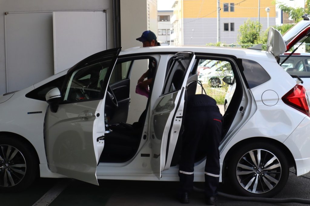 取材日も突然お客さまがSSに訪れ、車両の中と外の洗車を依頼。所長は「アプリで簡単に予約できるのですが、突然来られる常連さんもいますよ」と慣れた様子で微笑みます。