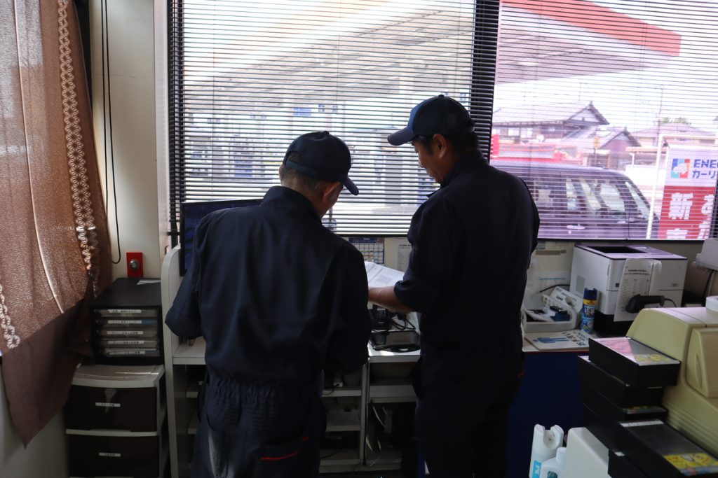 車のプロフェッショナルが揃う八日市SS。車のことで困ったときには、ぜひ気軽に相談してみてください。