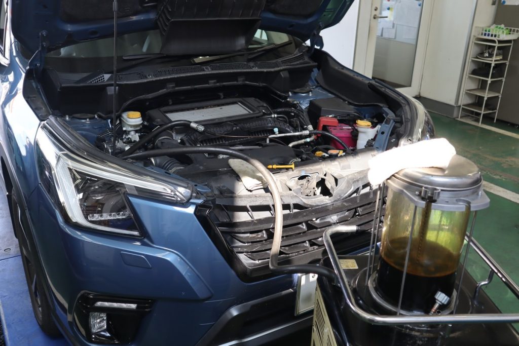 まずはオイルフィルタの確認。車両によって設置されている位置が違うため、確認が必要です。