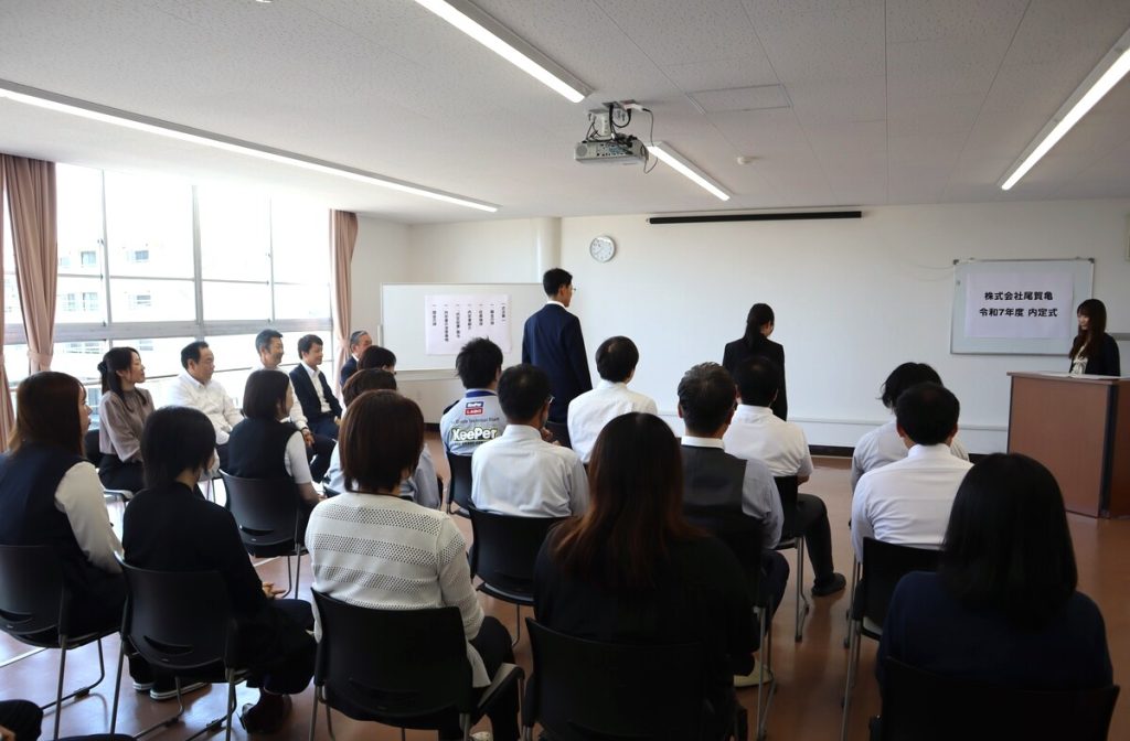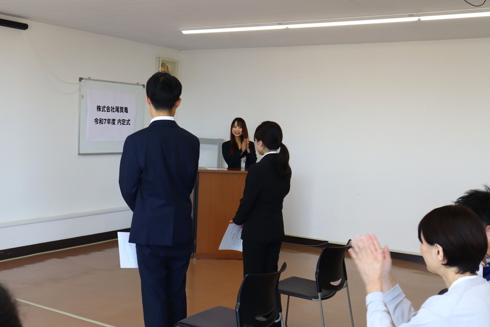 尾賀亀本社で行なわれた「内定式」。
