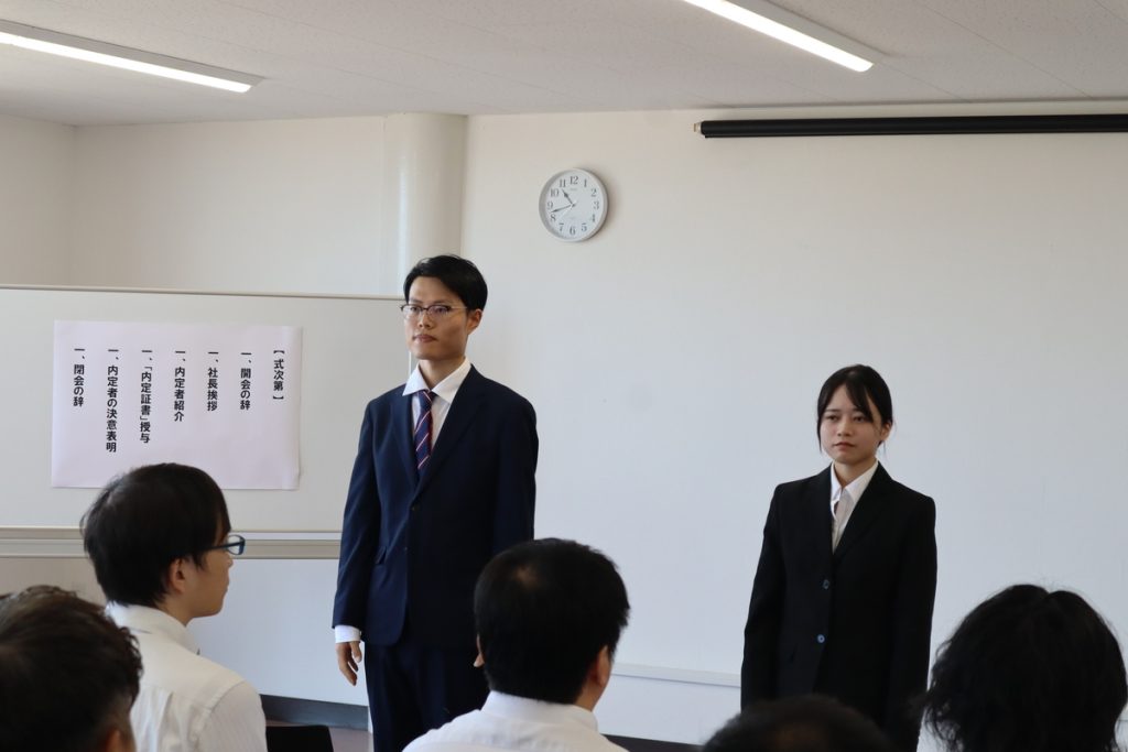 その後、内定者からの決意表明もあり、その文面が社長に手渡されました。