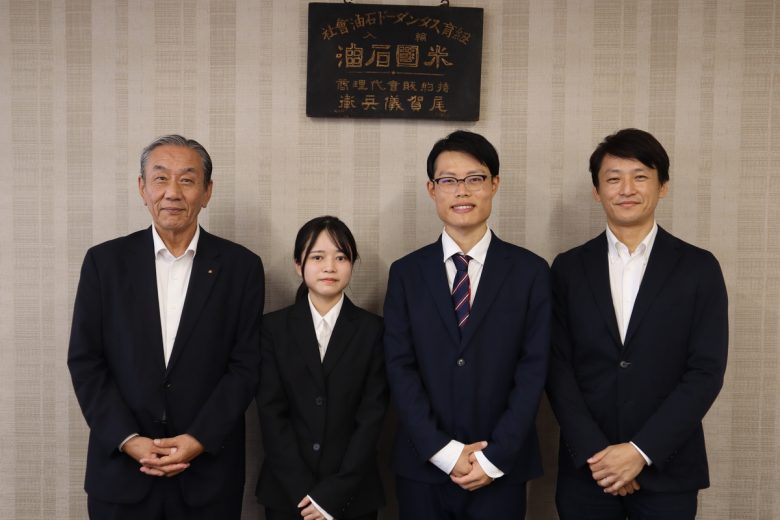 内定式後は応接室にて「記念撮影」。ひと仕事を終え、ホッとしたのも束の間。写真撮影でも少々緊張させてしまったかもしれませんが、素敵な笑顔を見せてくれました。