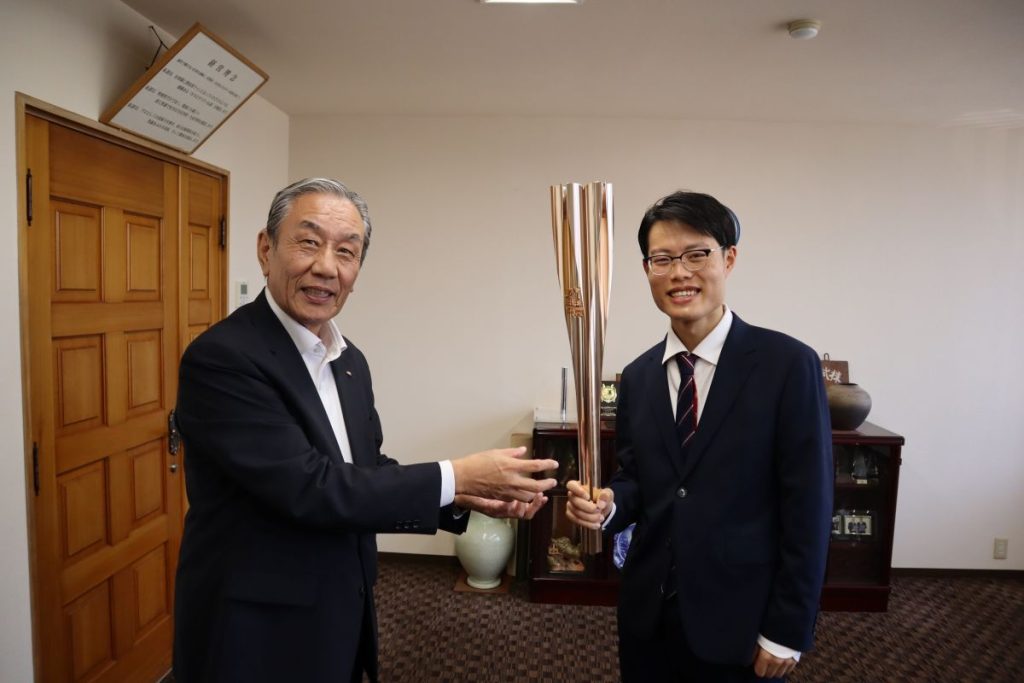 またその際、会長が2020年の「東京オリンピック」で聖火ランナーとして走った際の“聖火トーチ”のお話をしてくださいました。ちなみに東京2020のデザインは、上から見ると桜の花をしています。