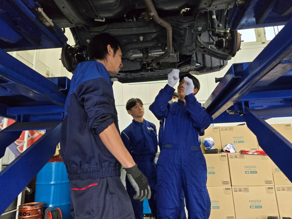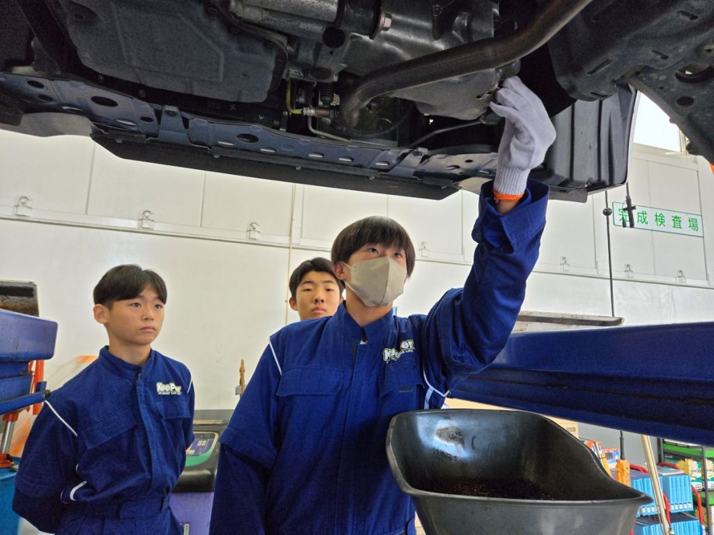 インターンシップでは、整備士の資格を持つ[Dr.Drive守山SS]所長の説明を聞きながらオイル交換を見学し、その一部を体験していただきました。