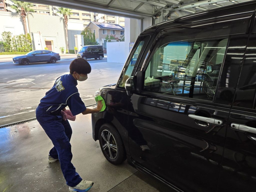 今回参加してくれた3人は運動部に所属しているということで、きっと体力のある学生さんたち。体を目いっぱい動かしながら、洗車に励んでくれました。