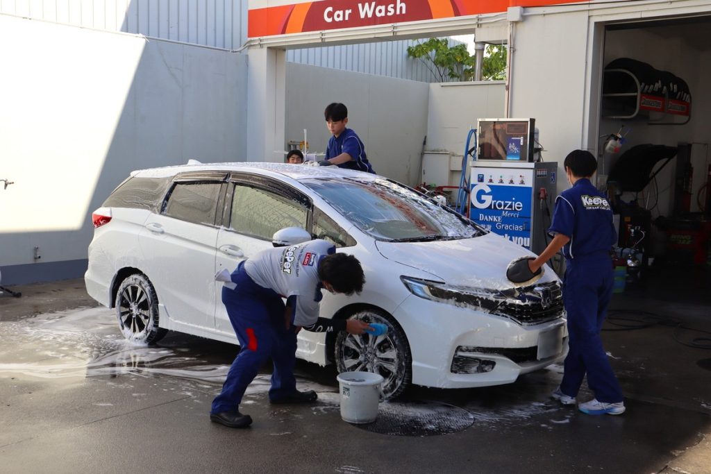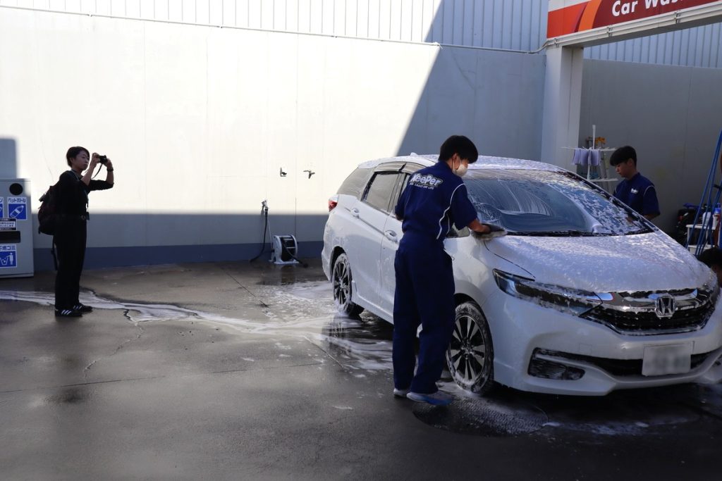 最後には「難しかったけど楽しかったです。泡で洗うときれいになって気持ちがいいです」との感想や、「ガソリンスタンドの仕事は給油しか知らなかったけど、ほかの仕事も知ることができました」という意見も聞くことができました。