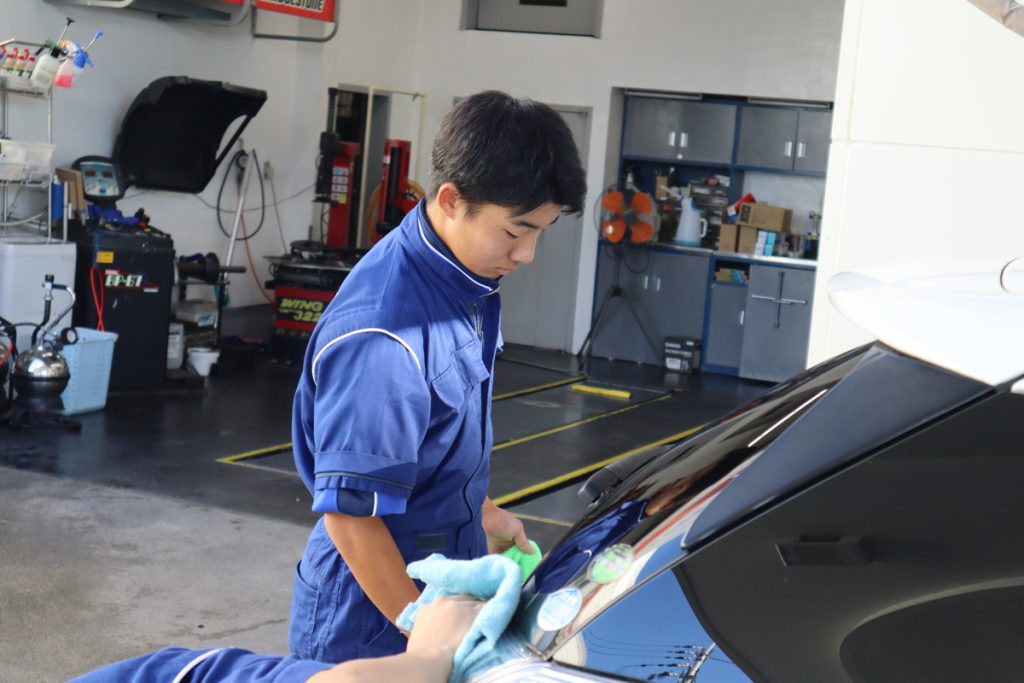 ここでも所長から指導いただき、洗車の基本を学んでいただきました。プロが使う道具を実際に使用できるのは貴重な機会です。