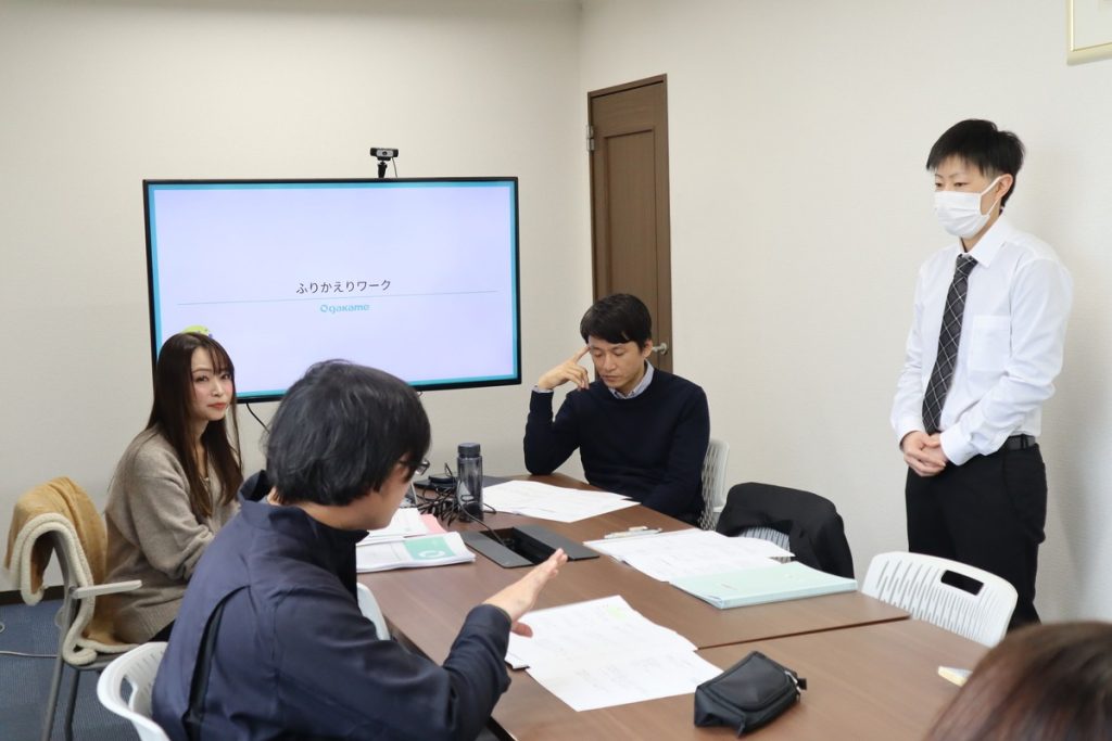 休憩を挟んだ「フォローアップ研修」後半は、より身近な先輩であるブロック長がサポートに入り“評価について”学びました。