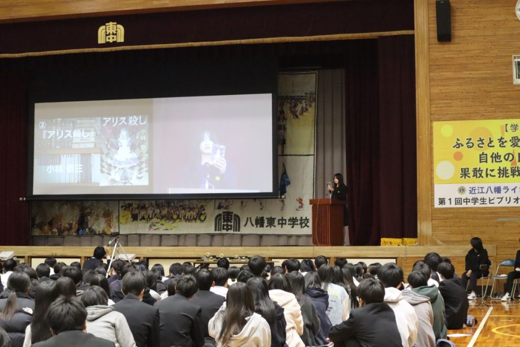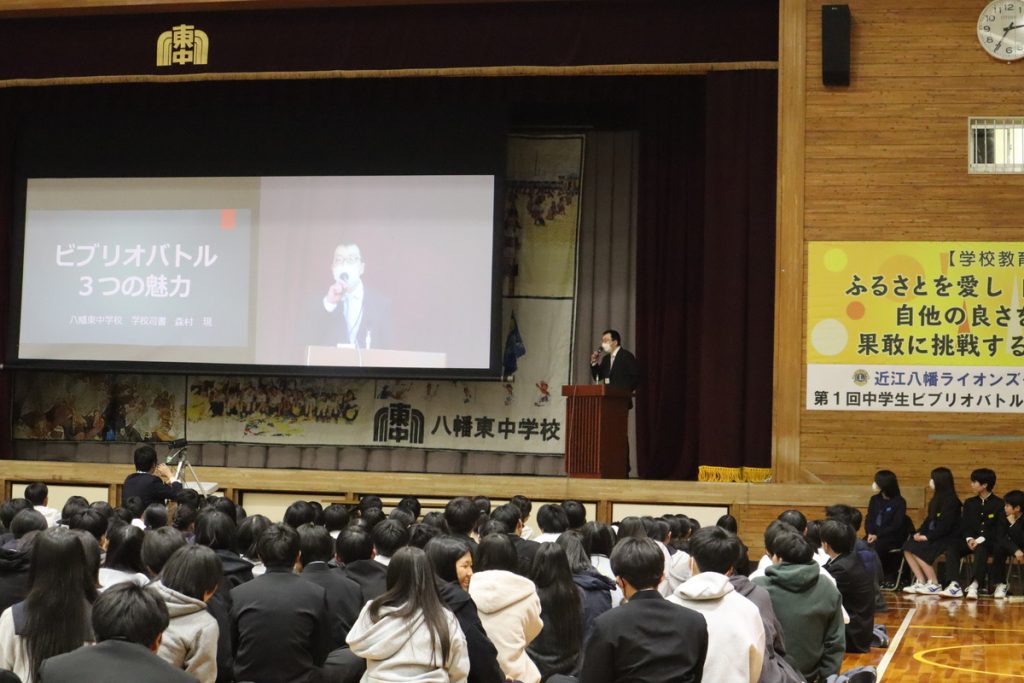 今回、「第1回中学生ビブリオバトル近江八幡大会」と題して、近江八幡ライオンズクラブさま主催で開かれたプレゼン大会。尾賀亀も、会場となった八幡東中学校へおじゃましてきました。