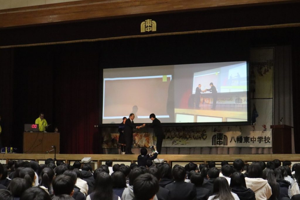 そしてビブリオバトルへの熱い想いをもつ八幡東中学校の校長先生から「ビブリオバトルは今年で三年目。また一段とレベルを上げてきたと感じました。ビブリオバトルを知らない一年生はもちろん、質問もとても良かった。みんなに賞をあげたいです」と話し、「ビブリオバトルが、東中の文化として根付いてきた。文化は継承し、発展させるものです」と伝えられました。