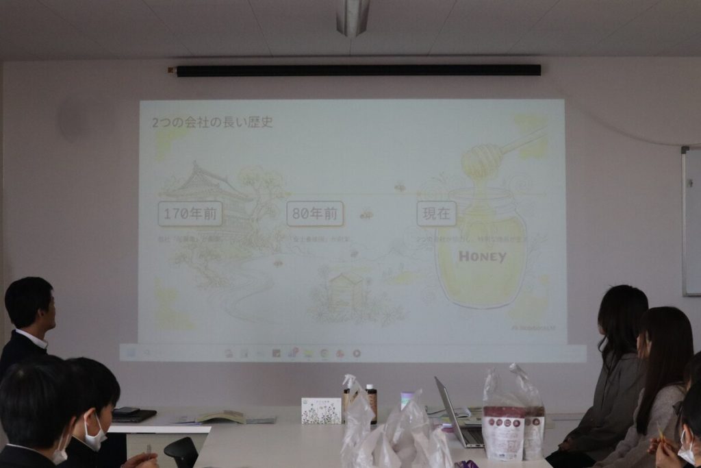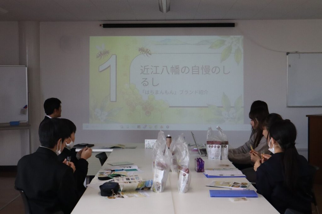 動画視聴後は、実際のハチミツを食べていただき、その香りと美味しさを体感していただきました。豊かな近江八幡の自然に育まれた希少なハチミツのことが、中学生の皆さんの思い出になりますように。