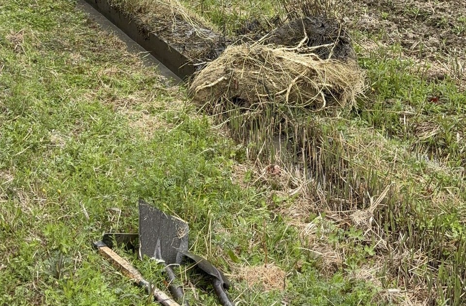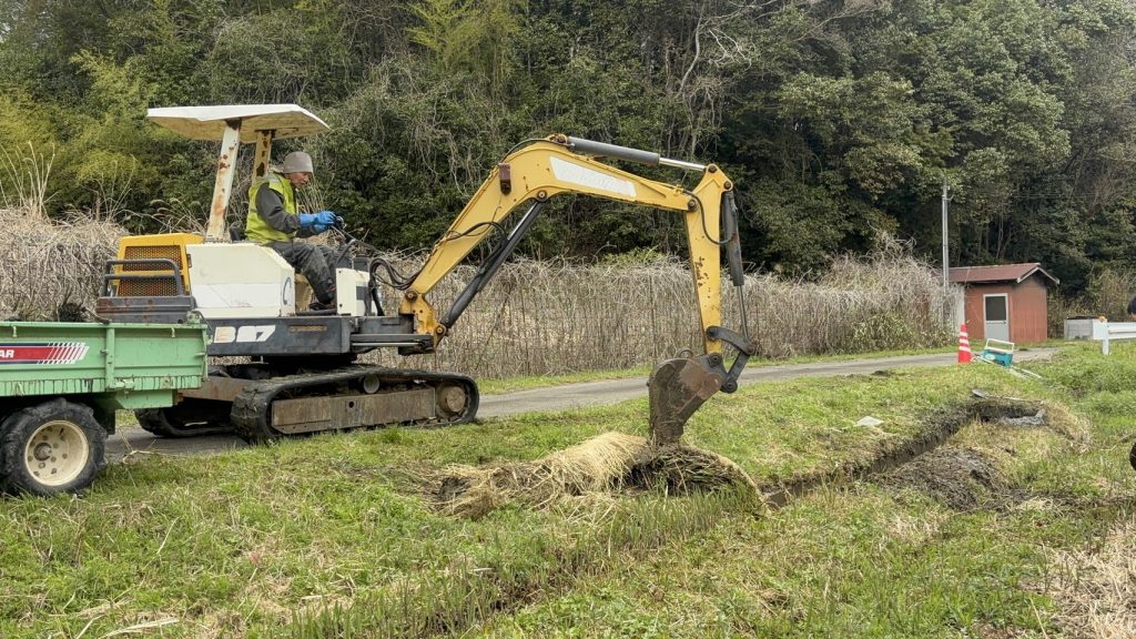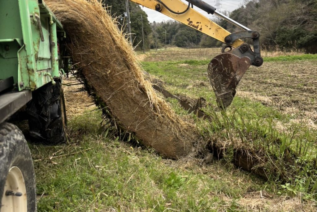 というのも、お借りする田んぼの一部は長らく使用されていなかったもので、溝に雑草が生い茂っていたからです。スコップなどで掘り起こそうにも、複数の雑草の根が絡み合い、簡単にはいきません。